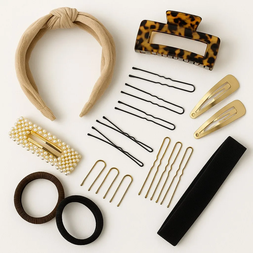 Аксессуары для волос — декоративные или функциональные изделия, которые используют для фиксации прически, украшения укладки или придания образу выразительности. К категории относятся заколки, невидимки, шпильки, резинки, повязки или более нарядные элементы — диадемы, тиары, обручи, ленты, банты.